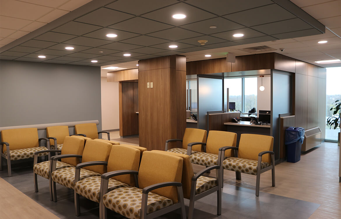 In the 10,000 SF surgery suite, DMR completed an outpatient space comprised of exam rooms, consultation space and doctor’s offices/workrooms, with features that improved privacy beyond basic HIPAA compliance. The interior design scheme so closely matched the hospital’s commitment to a positive patient experience that it has been implemented as a standard, beginning with DMR’s projects in the oncology and cardiology suites.
