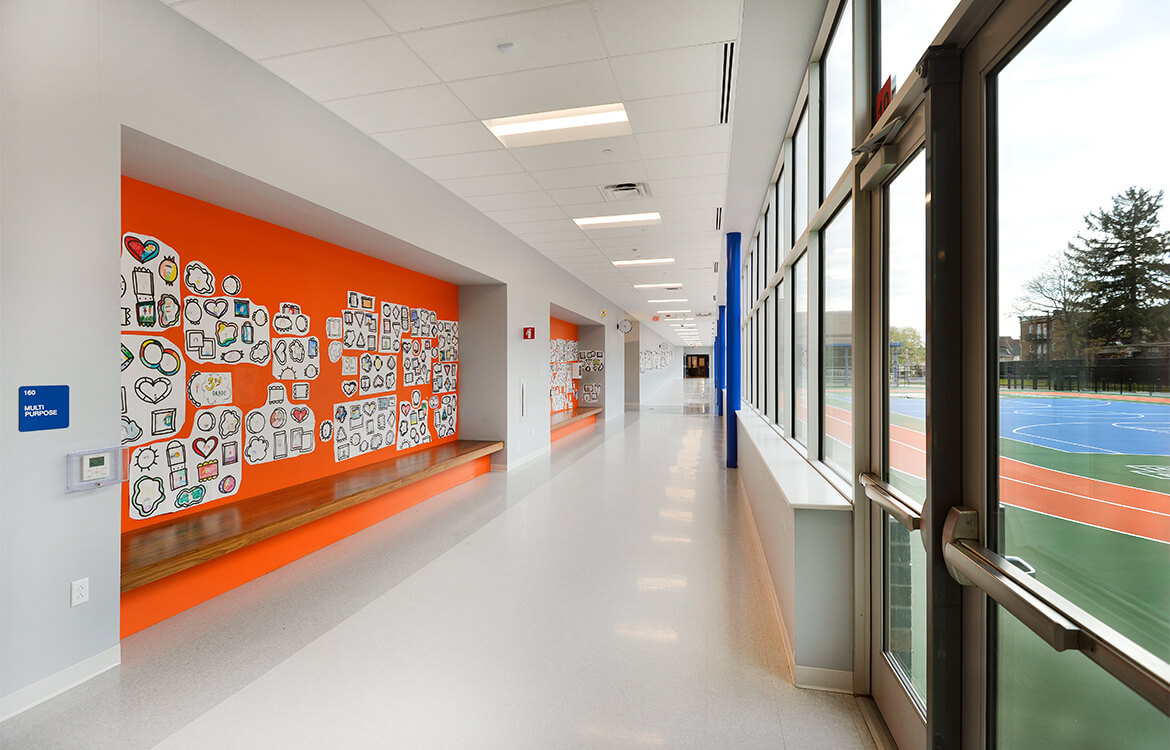 The 127,000 SF, state-of-the-art facility replaced the Lincoln School Annex, providing greater space, parking and programming, such as multi-purpose assembly room and a 14,000 SF playground, neither of which the previous facility had.