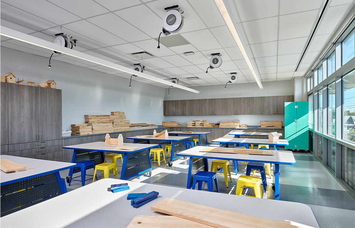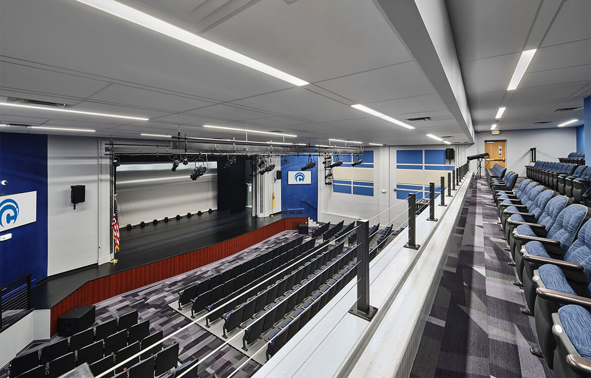 The team then turned to passing the public referendum. DMR worked closely with the town and the district to include projects at all schools in the referendum, closely adhering to a strict budget to reduce the impact on taxpayers. Drawing on trends in educational design, DMR proposed the construction of an advanced facility, with enhanced art and music education spaces and a think tank. DMR also proposed a renovation to the existing high school auditorium, which would be shared by both schools. Each of these factors are credited with helping pass the referendum.