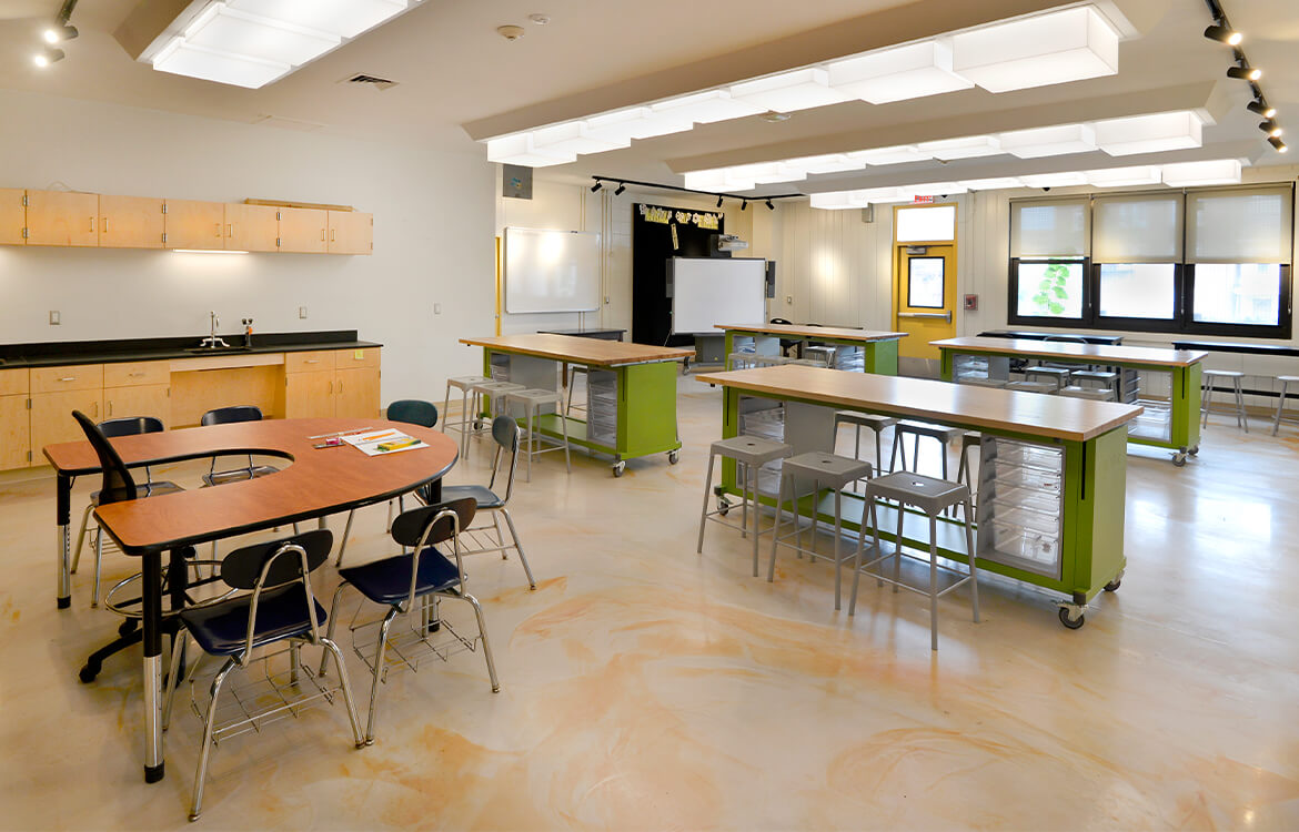 Reflecting a shift in education modes toward more divergent learning spaces, as architect of record, DMR assisted the Passaic Board of Education with renovating three classrooms to better reflect the flexibility, technology, furniture and materials called for in these forward-thinking spaces. Each of the projects were accommodated within existing space at the Passaic Academy for Science and Engineering.