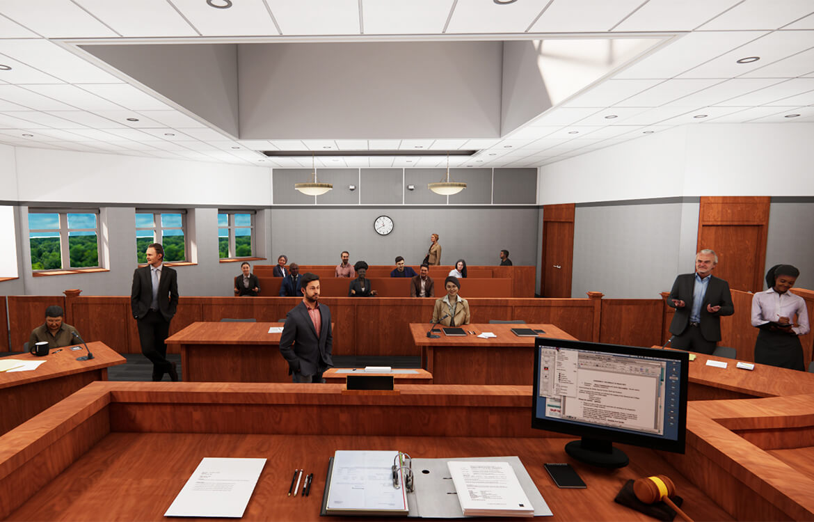 The project began in the existing law library, an underutilized space as most materials are now digital. DMR designed an interior renovation to transform the space into a new courtroom, including necessary security measures and coordinating with the Assignment Judge and Administrative Office of the Courts.