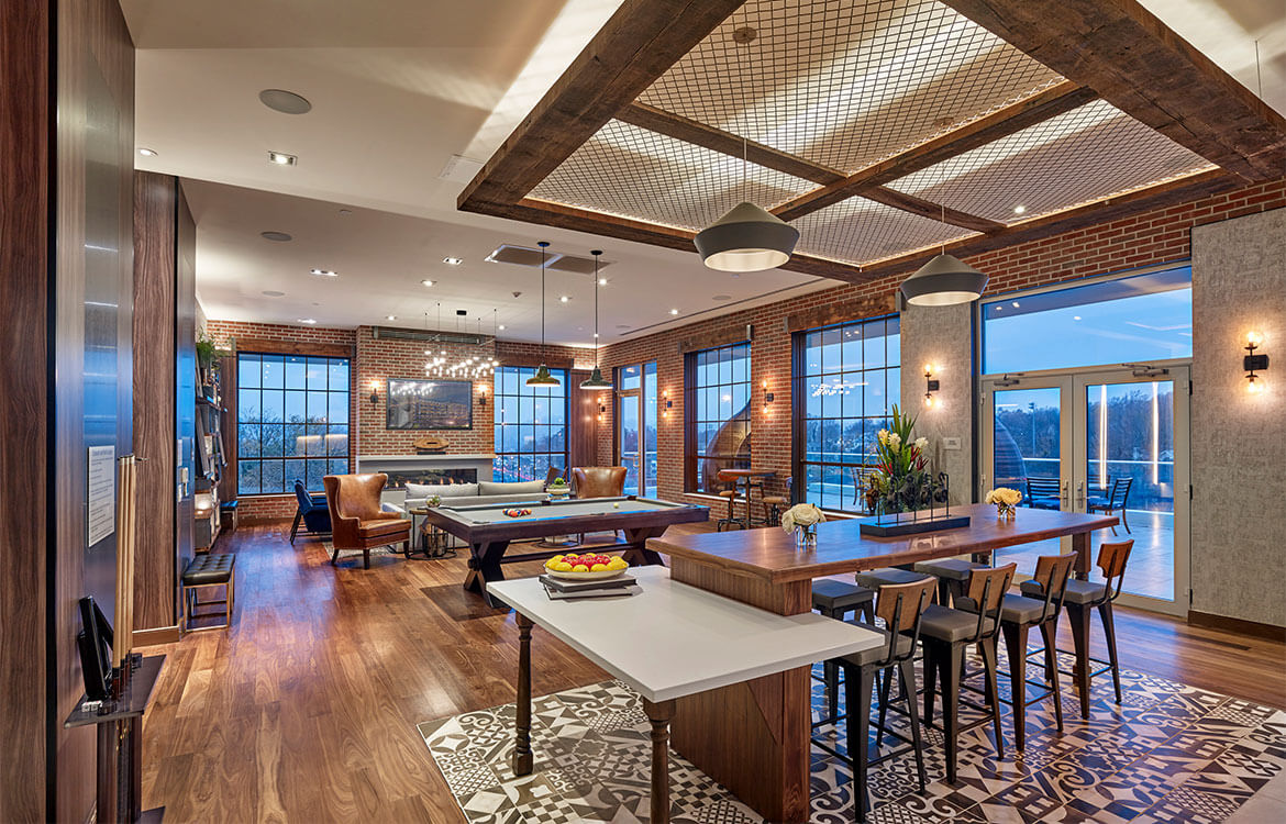 The design converted the existing Annin building into 52 loft-style apartment units, including the addition of a penthouse. The new construction building included 60 more units. DMR’s designs take advantage of the 13’ high ceilings that are complemented with an urban loft style design, including polished concrete floors, exposed structure and ducts, and large windows in each studio, one- or two-bedroom unit.